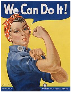 Rosie the Riveter's slogan "We Can Do It" refers to the six million woman who entered the workforce, taking on roles formerly completed by males during World War 2.